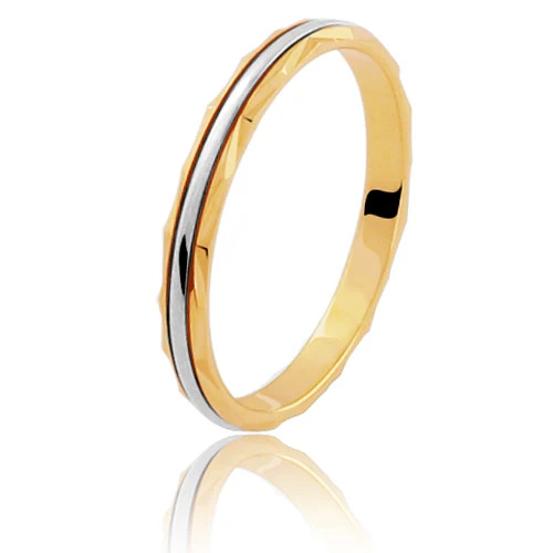 Alliance en deux ors large de 2.5 mm Alliance fantaisie « Aubagne ».
