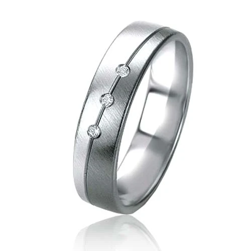 L’alliance est sertie sur sa longueur de trois diamants brillants.