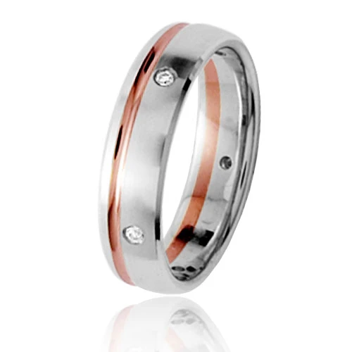 Un liseret en or rose fait le tour de l’alliance sur la partie extérieure.
