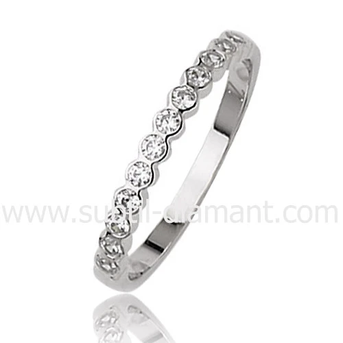 . L’alliance à une largeur de 2.5 mm. Le poids total des 12 diamants est de 0.31 ct. La couleur des diamants est G (extra blanc).