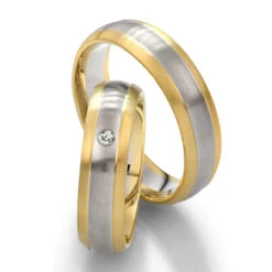 Deux fines bandes d’or jaune et blanc se succèdent le long de l’alliance.