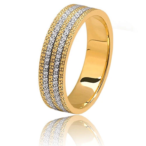 Alliance fantaisie « Hawaï » en or bicolore (or jaune / or blanc)18 carats.