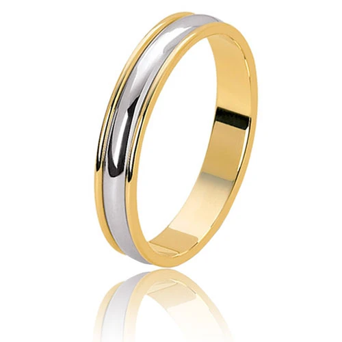 Alliance « Messange » en or et platine, la base de l’alliance est en or jaune rehaussée d’un anneau bombé en platine.