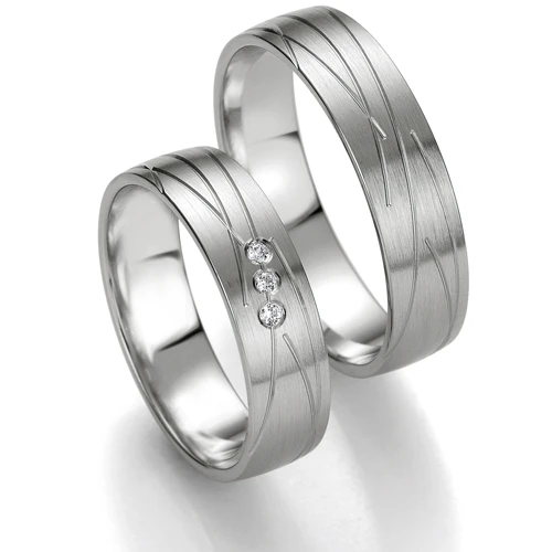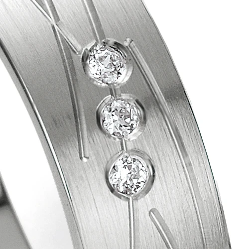 Finition de l’alliance polie brossée. Alliance sertie de 3 diamants taille brillant d’un poids de 0.03 ct. Le diamant a une couleur « G » et une pureté « VS ». La largeur de l’alliance est de 5.5 mm. L’épaisseur de l’alliance est de 1.3 mm.