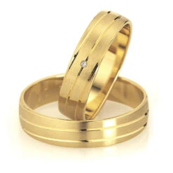 L’alliance se compose d’une bande en or jaune et la seconde plus fine en or blanc.