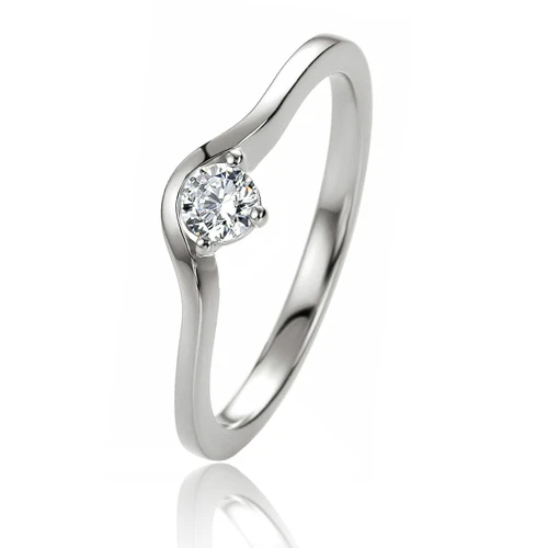 Le corps de la bague semble contourner le diamant. L’autre coté du diamant est serti sur une monture 3 griffes.