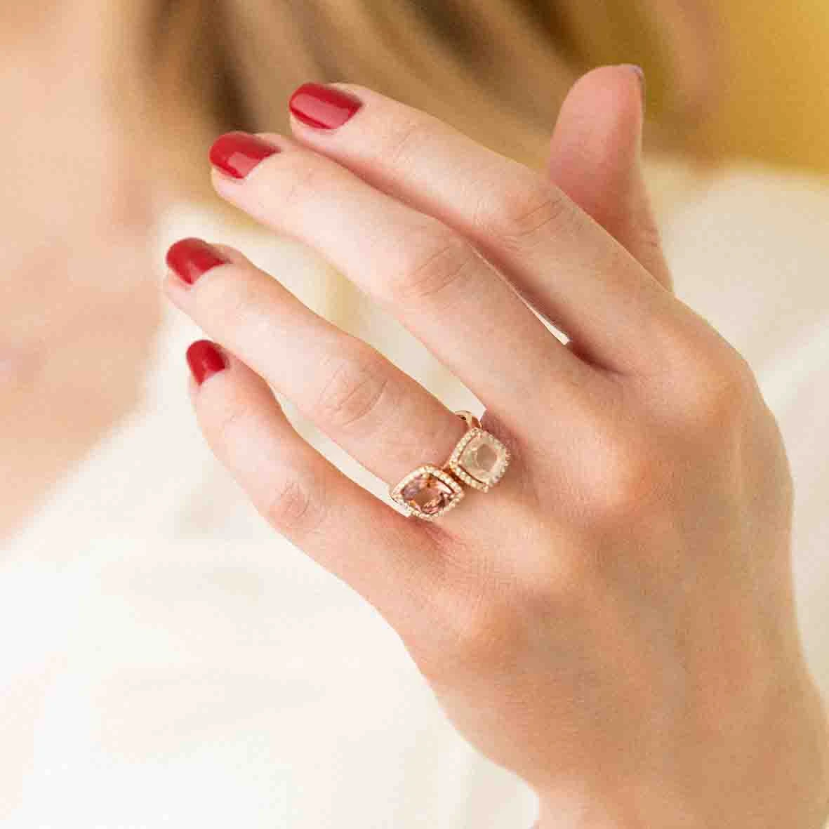 Bague Etna, prasiolite et diamants sur or rose 750/1000