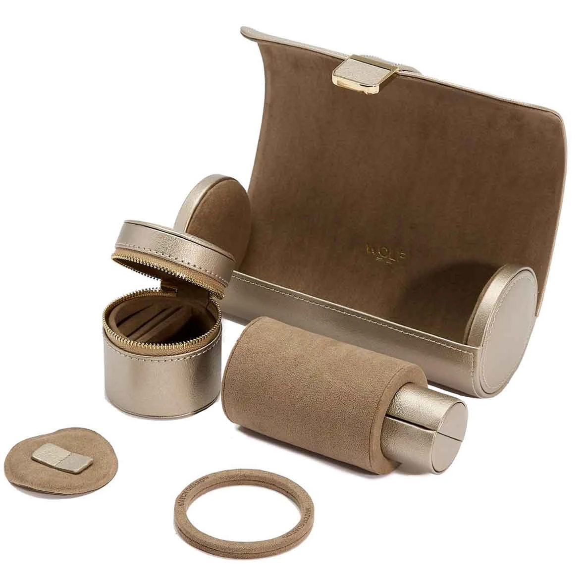 Boîte de montre Wolf 1834 de la collection Palermo Double Watch Roll w/ Jewelry Pouch