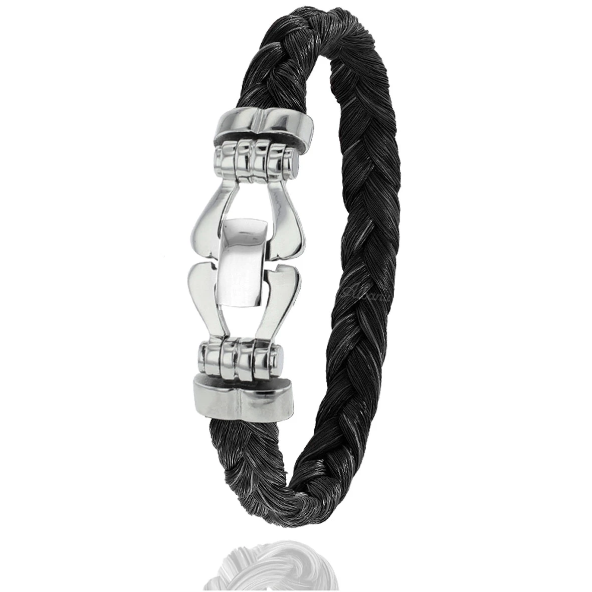 Les tailles disponibles vont de 15cm à 23cm. Ce bracelet est tressé en crin de cheval de couleur noir .