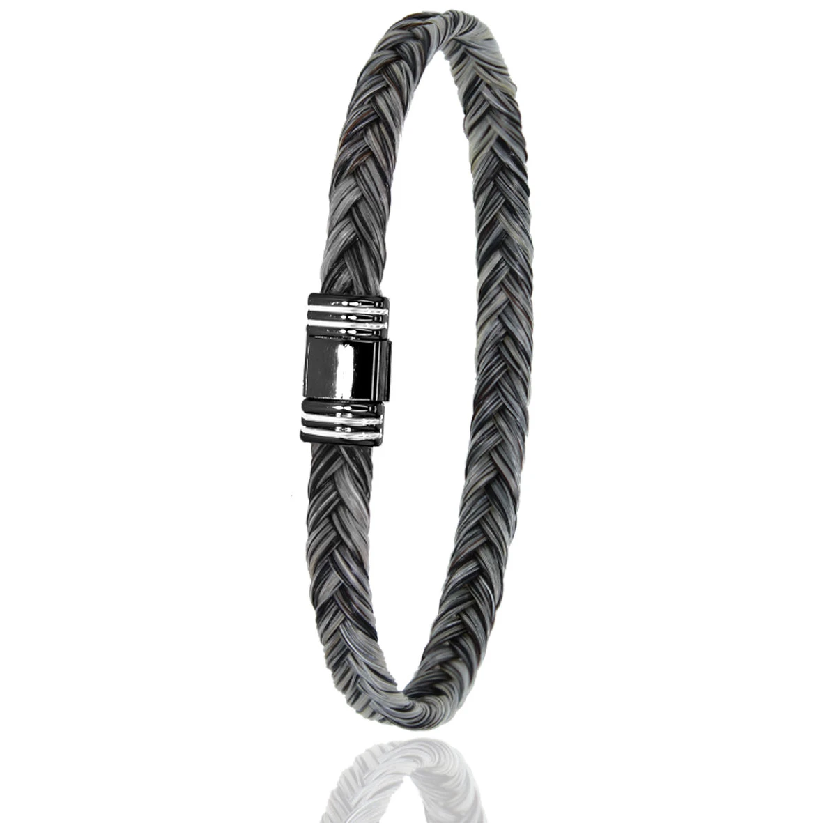 Bracelet Albanu en crin de cheval, avec un fermoir en acier inoxydable avec revêtement PVD noir et or blanc.