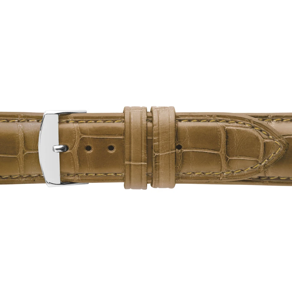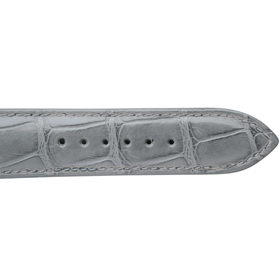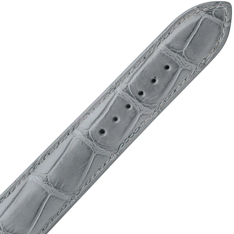 L’épaisseur du bracelet cuir Crocodile Mat est de 5 mm au boîtier amincie à 2.5 mm à la pointe.