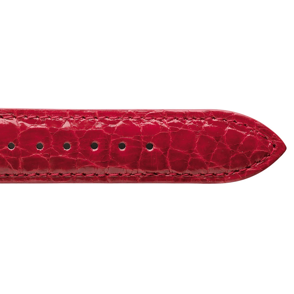 L’épaisseur du bracelet cuir Crocodile rouge est de 3 mm au boîtier amincie à 2.5 mm à la pointe.