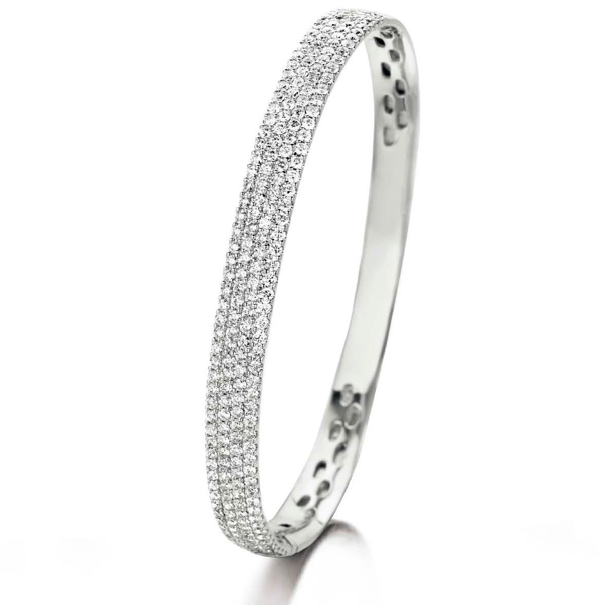Bracelet Jonc Diamant En Or Blanc Et Diamant 3.41 Ct Clémentine -053150-A