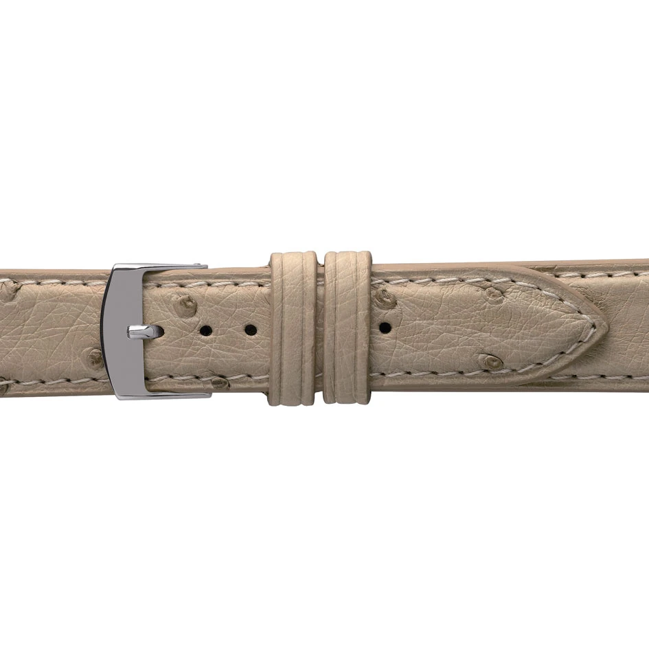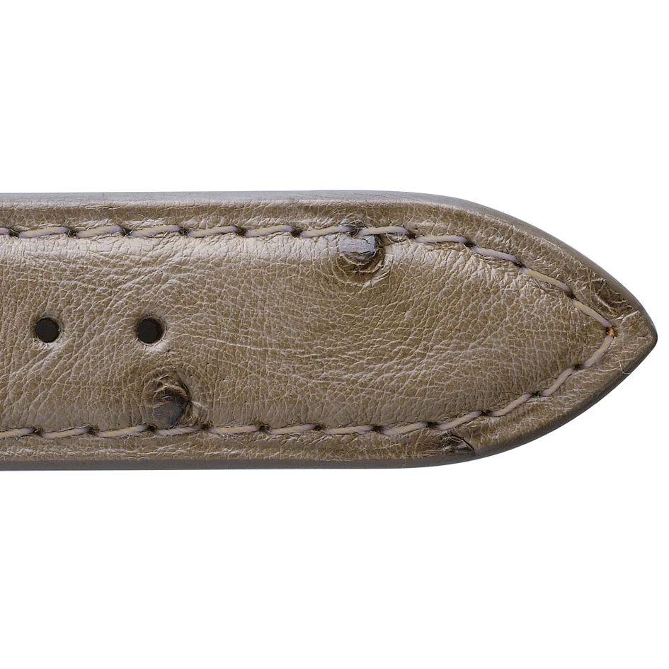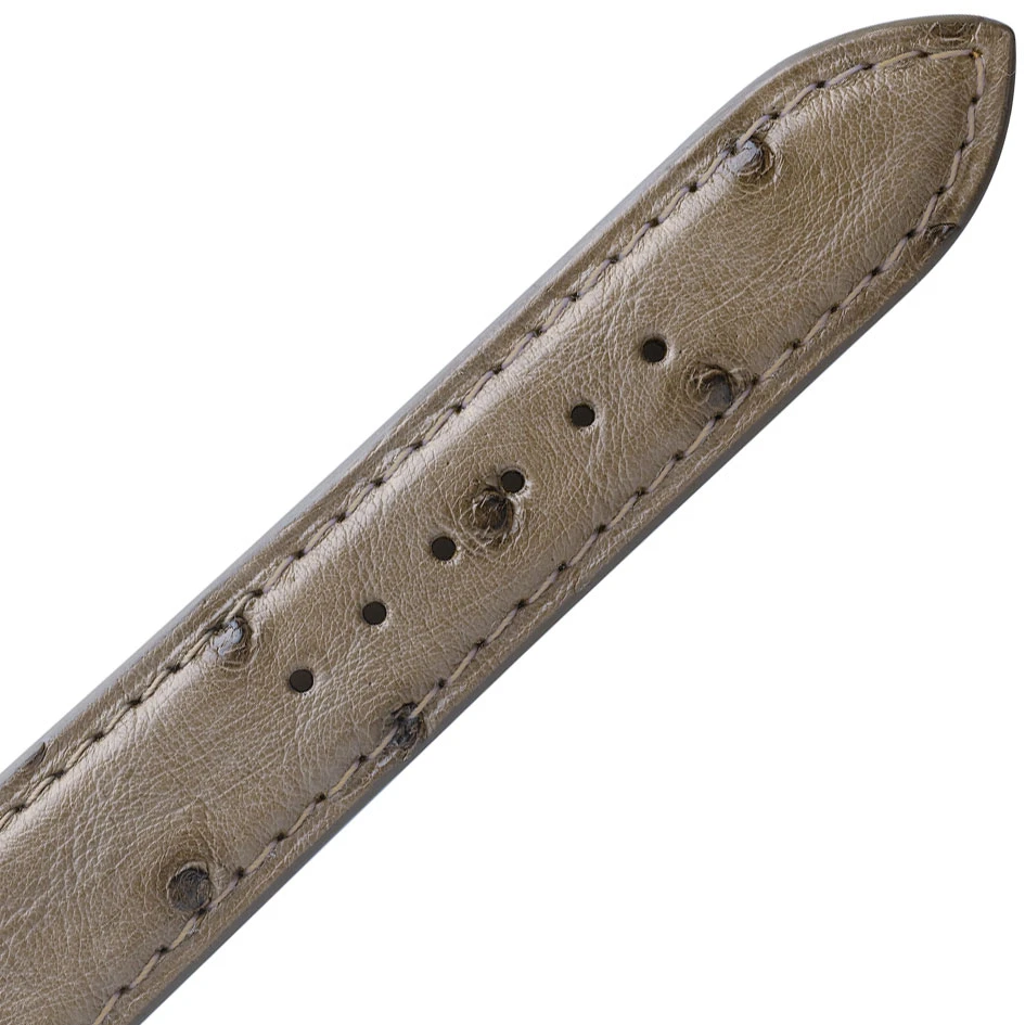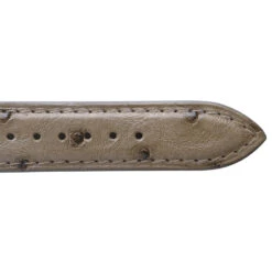 Le bracelet de montre en Autruche Taupe a une doublure en cuir.