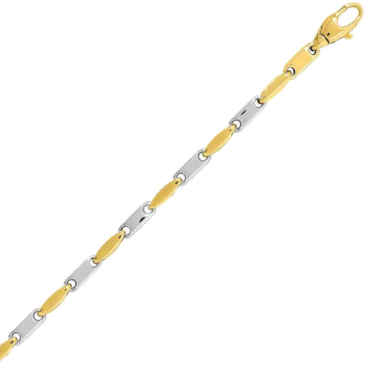 Un style contemporain et très tendance, la fantaisie de la chaîne réside alors dans la forme des mailles, qui ont des motifs bombés ou torsadés ou autres.