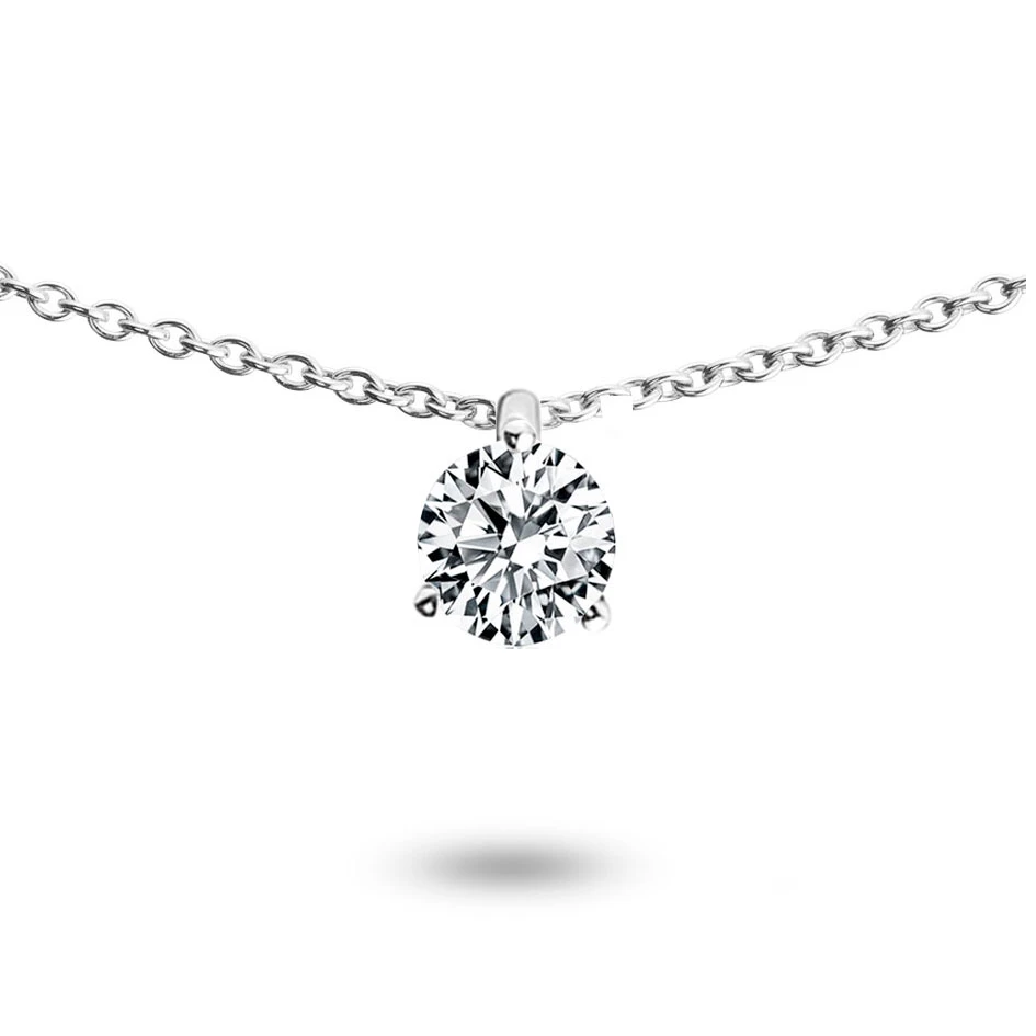 Collier diamant en or de 18 carats monté avec un diamant d’un poids 0.20 ct d’un diamètre de 3.75 mm.