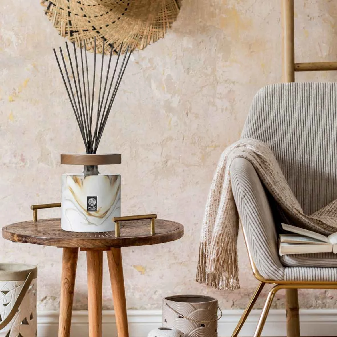 Pensé pour traverser le temps, le diffuseur se recharge à l’infini avec l’une des senteurs de la gamme Jambo