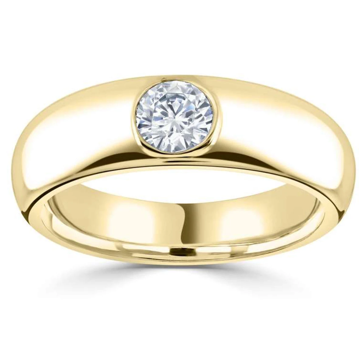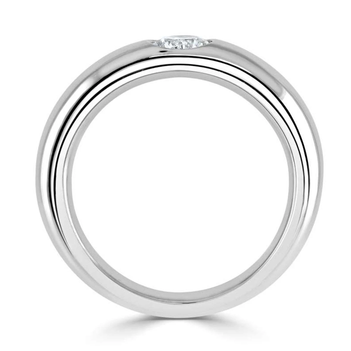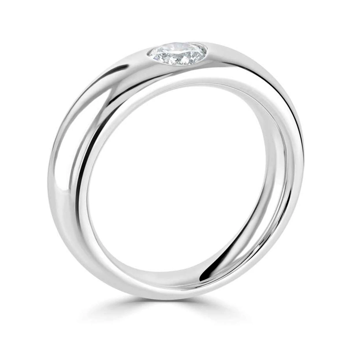 Le corps de bague large et bombé vient sertir un diamant taille brillant en serti clos