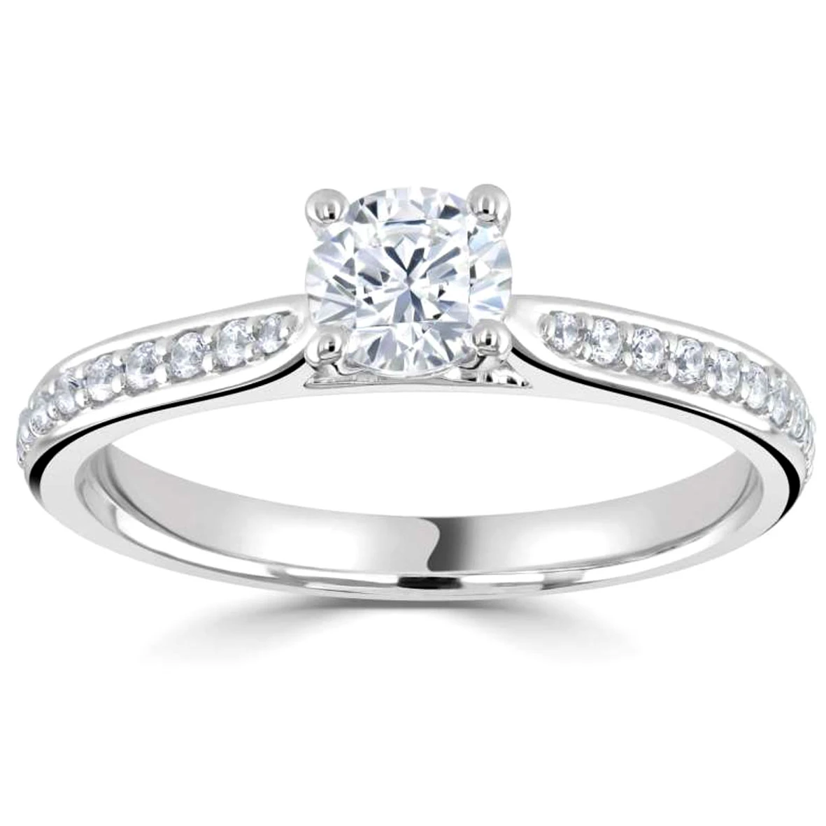 20 diamants sont sertis par des gains remontant vers le châton de la bague.