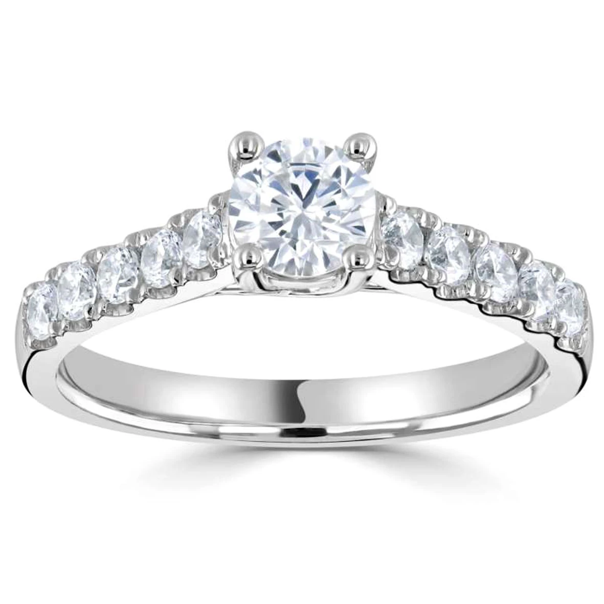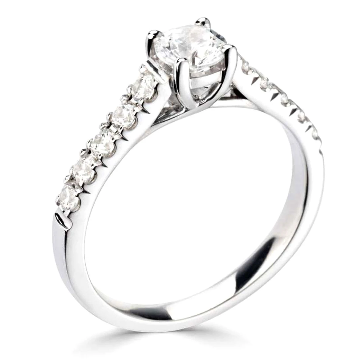 10 diamants sont sertis par des griffes remontant vers le châton de la bague.