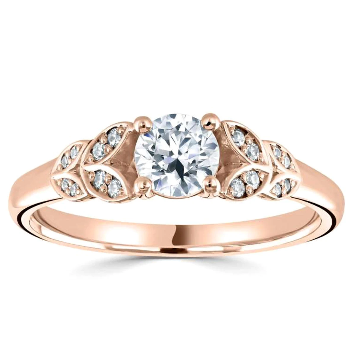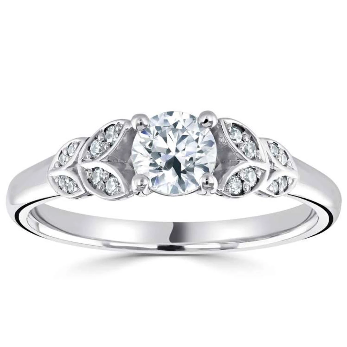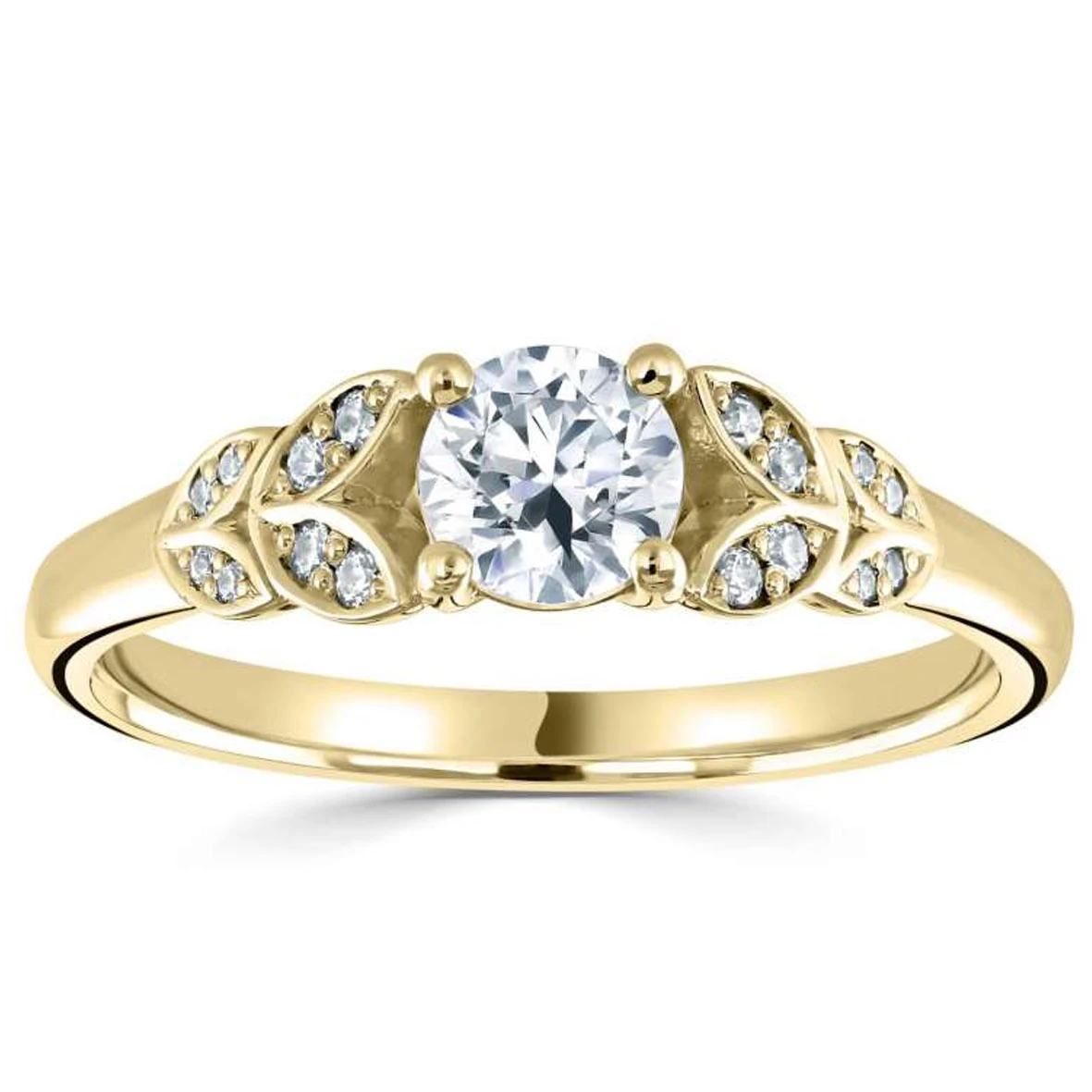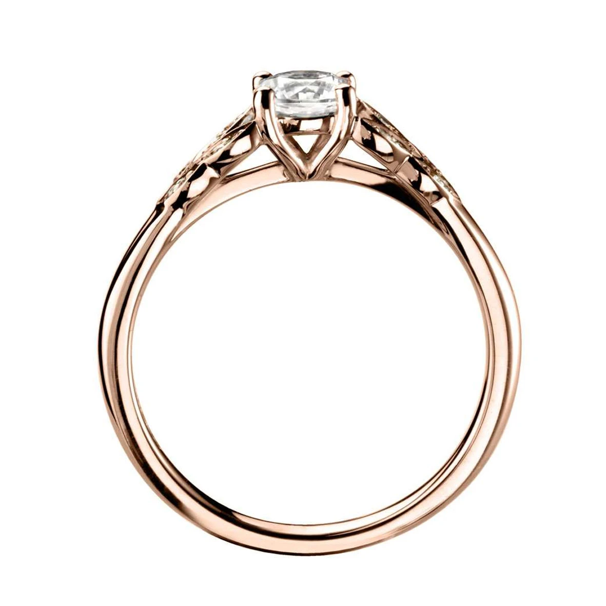 4 tulipes de chaque côté du diamant de centre donne à cette bague une grande élégance