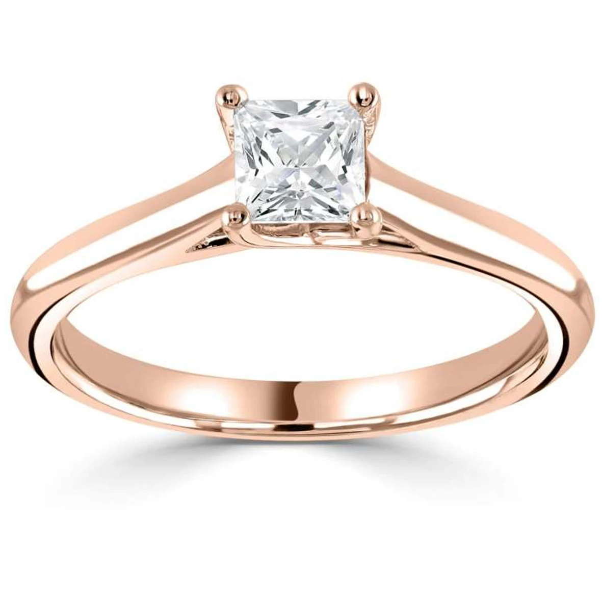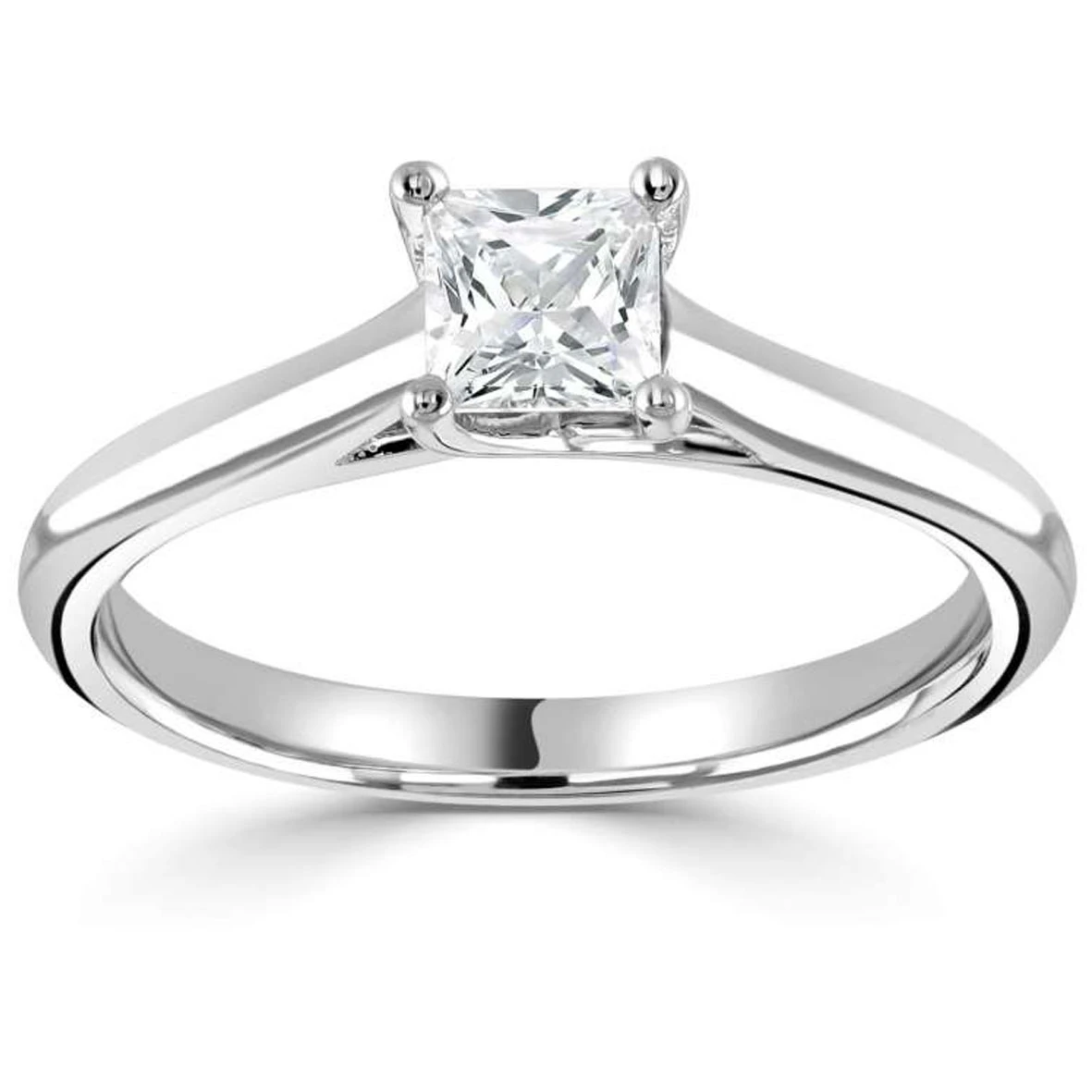 Bague de fiançailles solitaire diamant princesse en or blanc ou jaune de 18 carats.