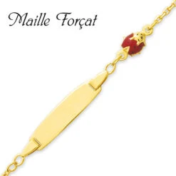 Découvrez notre sublime bracelet identité pour bébé en or jaune 18 carats, agrémenté d’une breloque coccinelle rouge en émail.