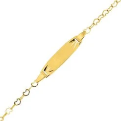 Vous cherchez une gourmette identité pour bébé en or jaune 18 carats avec un design fantaisie unique ?