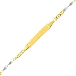 Si vous cherchez un bijou élégant pour votre bébé, cette gourmette identité en or jaune et blanc 18 carats est le choix parfait.