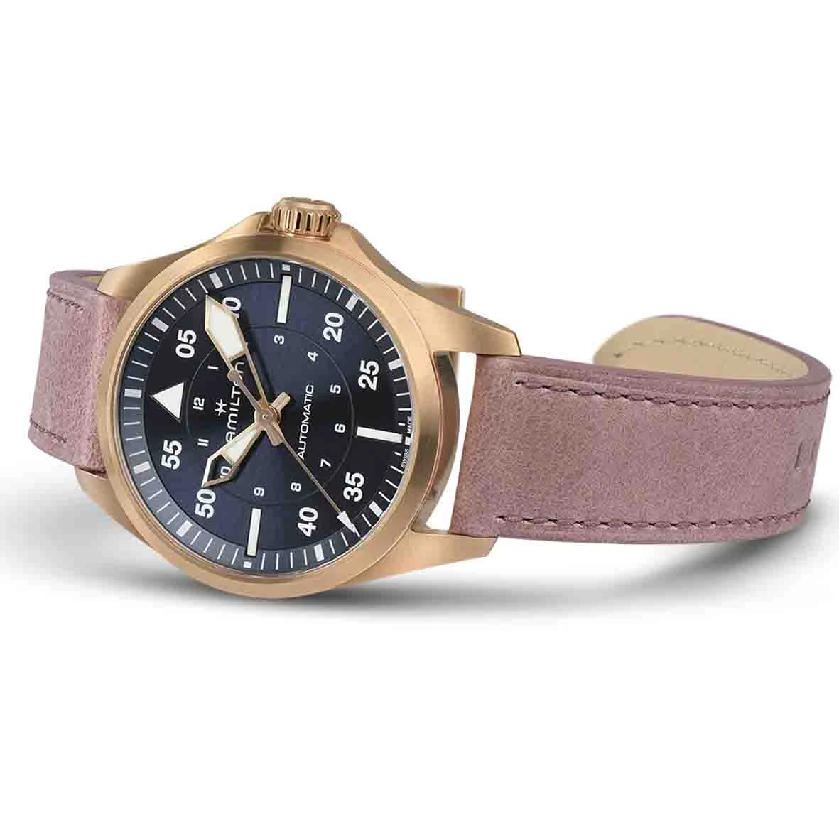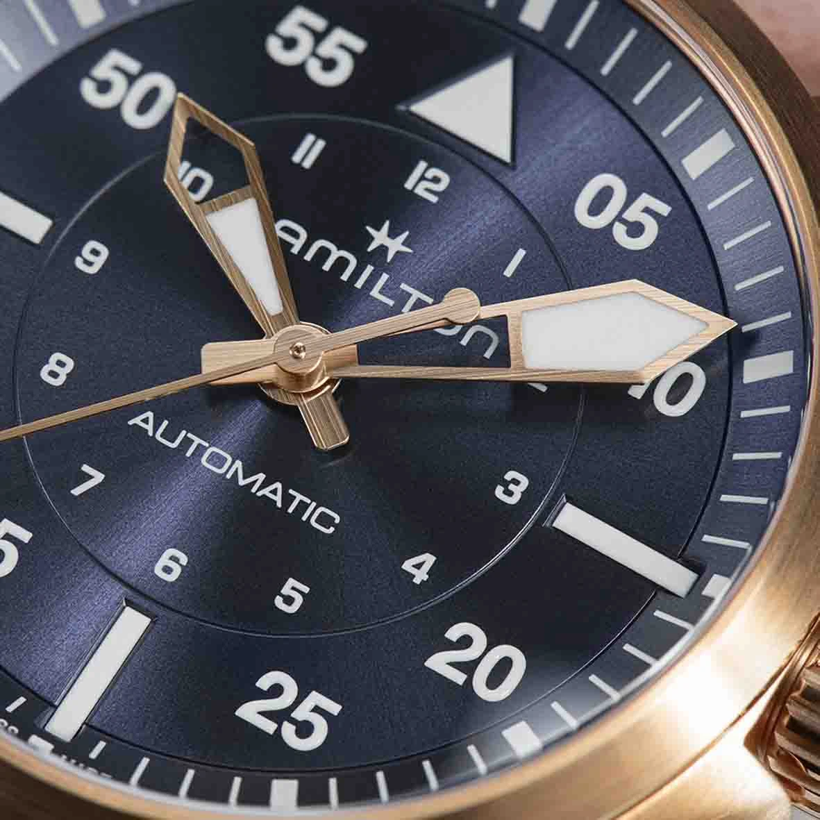 Destinée aux passionnés d’aviation, la Khaki Pilot Auto évoque l’esprit d’exploration et d’aventure de la Khaki.