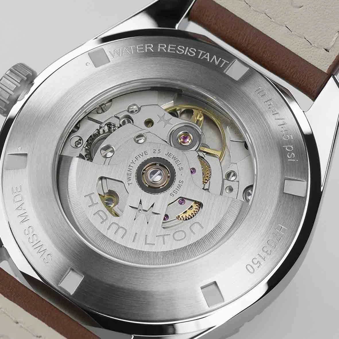 Le calibre H-10 est un mouvement à trois aiguilles doté d’une fonction date et d’une impressionnante réserve de marche de 80 heures.