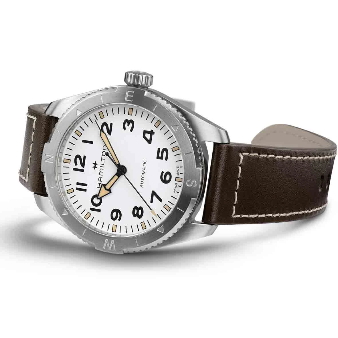 Avec son cadran blanc texturé revêtu de Super-Luminova® pour une lisibilité optimale, la montre Khaki Field Expedition est robuste répond à tous vos besoins.