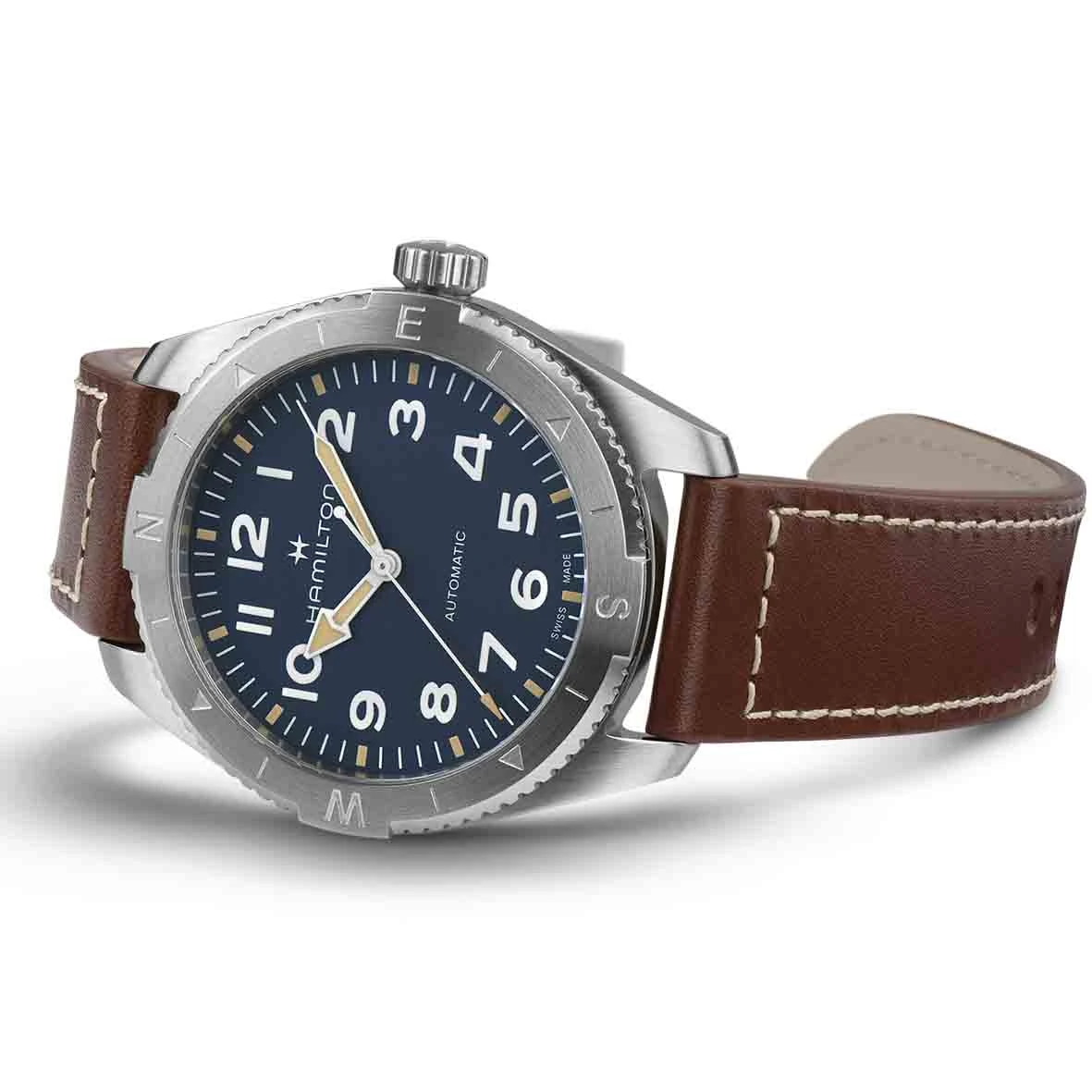 Arborant un cadran bleu texturé revêtu de Super-Luminova® pour une lisibilité optimale, la montre Khaki Field Expedition est robuste et répond à vos besoins.
