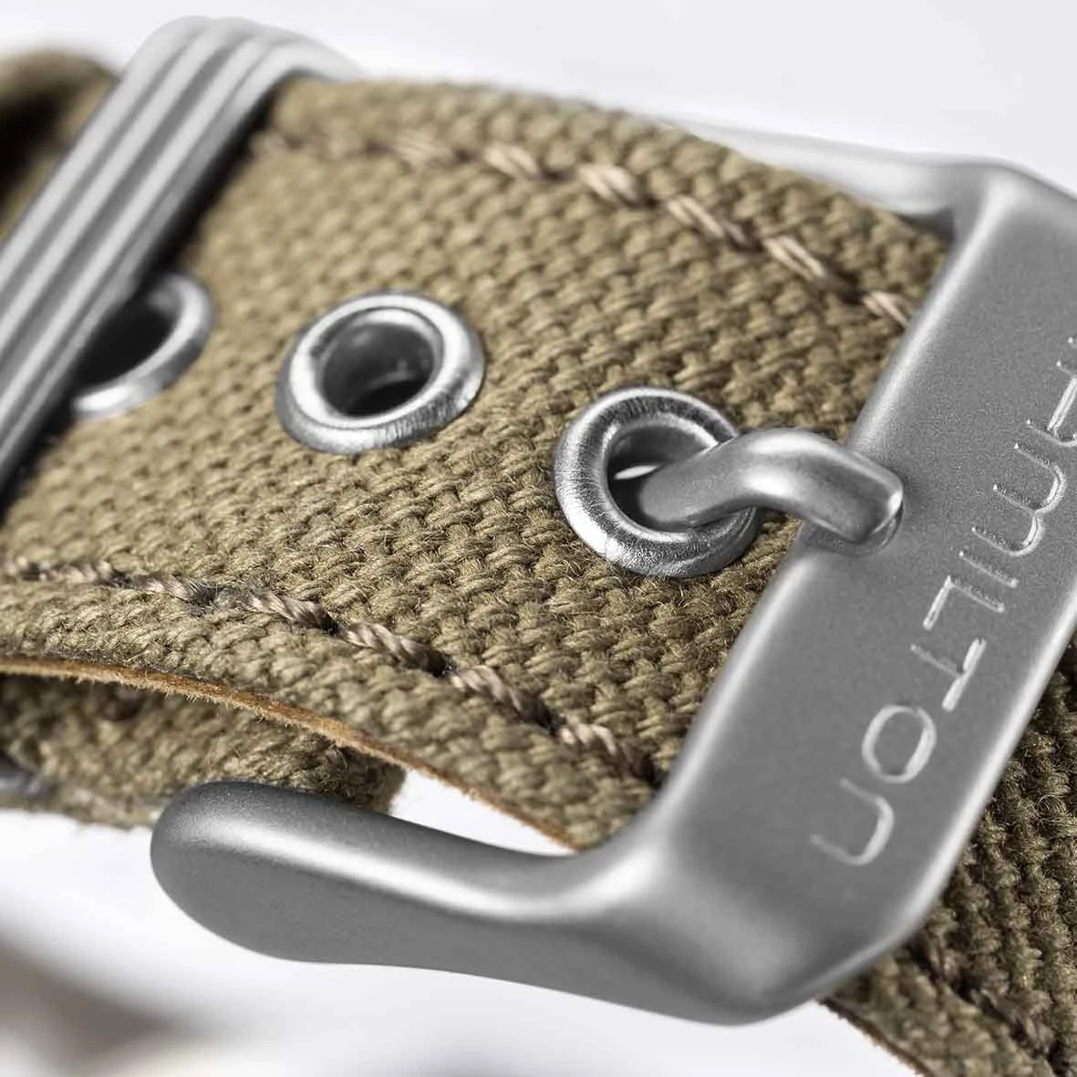 La Khaki Field Mechanical allie la robustesse de la ligne Khaki à la sobriété et au raffinement de la ligne Jazzmaster.