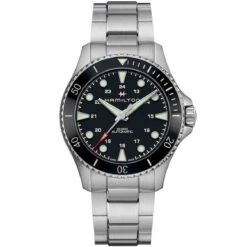 Sa lunette céramique, graduée de numéros gravés avec précision, ajoute du style à cette Khaki Navy Scuba Automatic et la protège de l’oxydation causée par le sable ou l’eau salée.