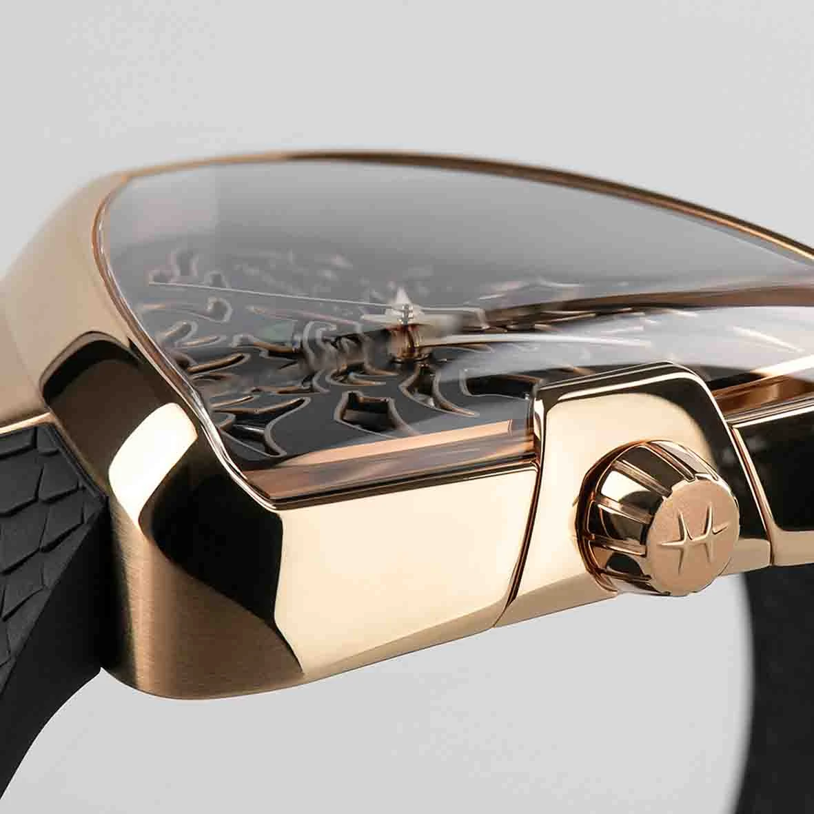 Dotée d’une tête de dragon noir aux yeux rouges flamboyants et d’une aiguille des secondes rouge spectaculaire, la Ventura Elvis80 Skeleton Dragon est accompagnée d’un bracelet en caoutchouc à écailles de dragon en 3D.