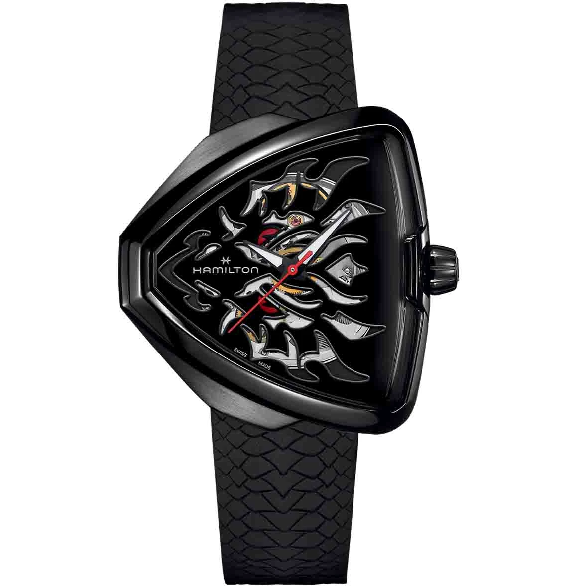 Dotée d’une tête de dragon noir aux yeux rouges flamboyants et d’une aiguille des secondes rouge spectaculaire, la Ventura Elvis80 Skeleton Dragon est accompagnée d’un bracelet en caoutchouc à écailles de dragon en 3D.