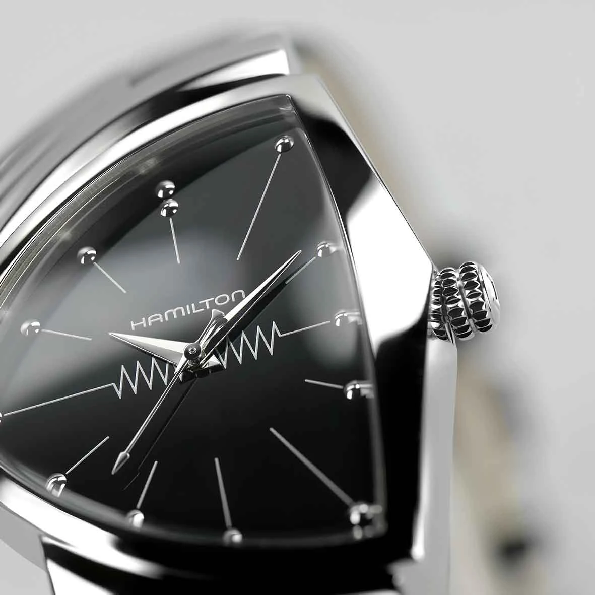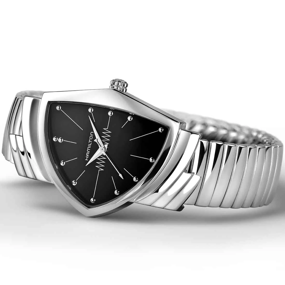 Il avait choisi de porter la Ventura Flex. C’est ce qui a inspiré cette nouvelle Ventura Flex, qui fait revivre son bracelet flexible pour un hommage tout en modernité à un design du milieu du siècle dernier.