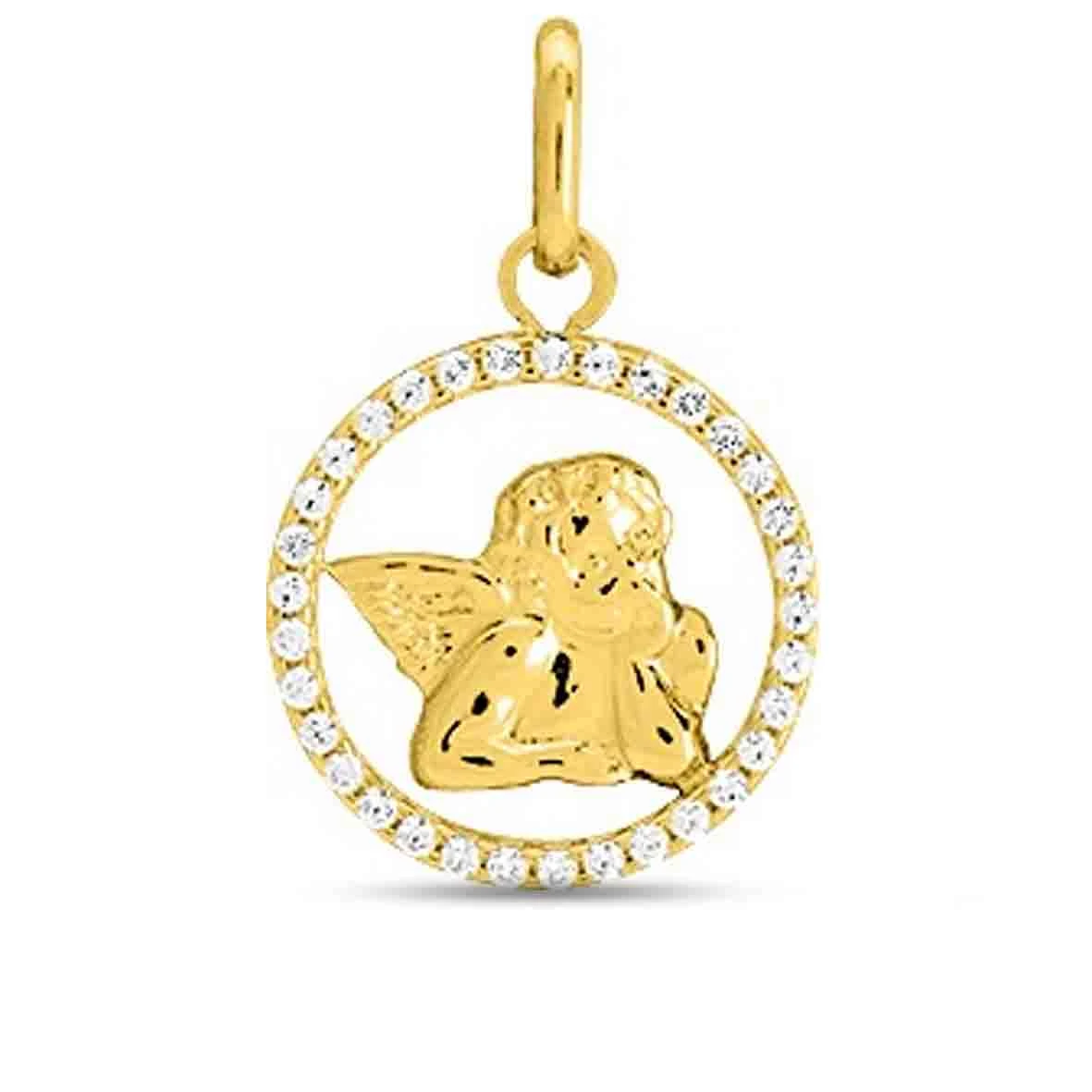 Médaille Ange Entourage Oxyde Or Jaune 14 Mm Myra – 9K20768