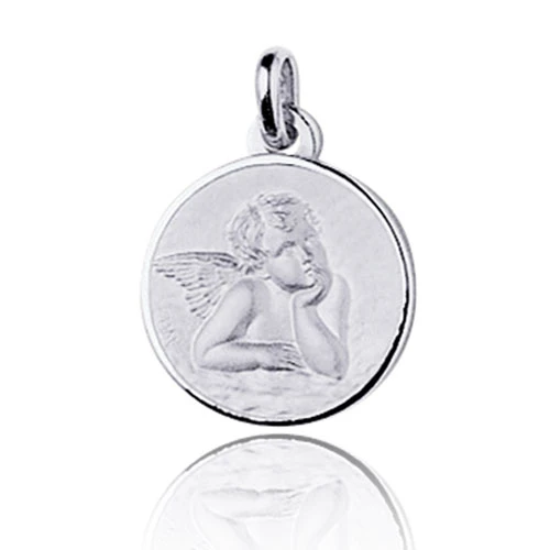 Médaille Ange en or blanc 18 carats.