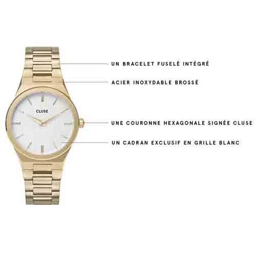 Montre Cluse Vigoureux H-Link Gold Snow White/Goldportant la référence CW0101210002