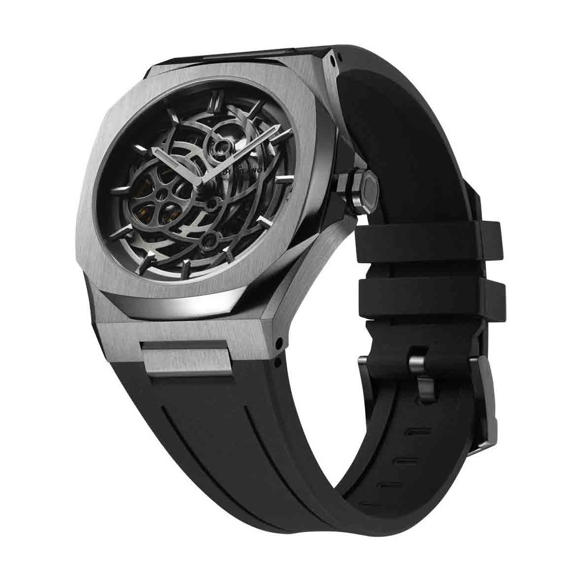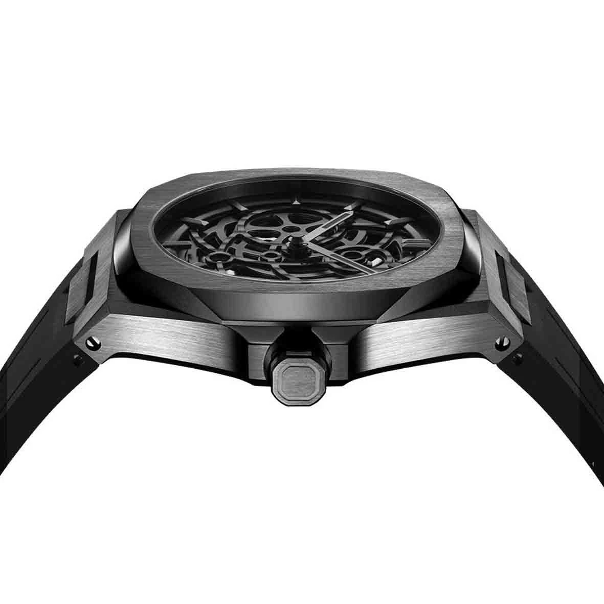 Doté d’un nouveau cadran squelette transparent, d’un mouvement à remontage automatique à 24 rubis et d’éléments en acier inoxydable .