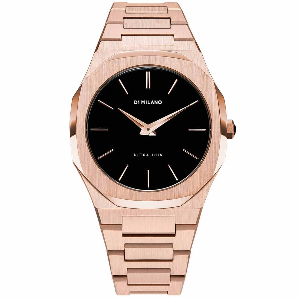 Montre D1 Milano Ultra Thin – Homme Quartz- Cadran Noir- 40 Mm – Acier Et PVD Rose – UTB03