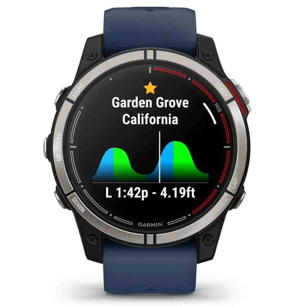 Pour une meilleure approche de la situation sur l’eau, la quatix® 7 vous avertit des changements de marée imminents et des dérives de mouillage.