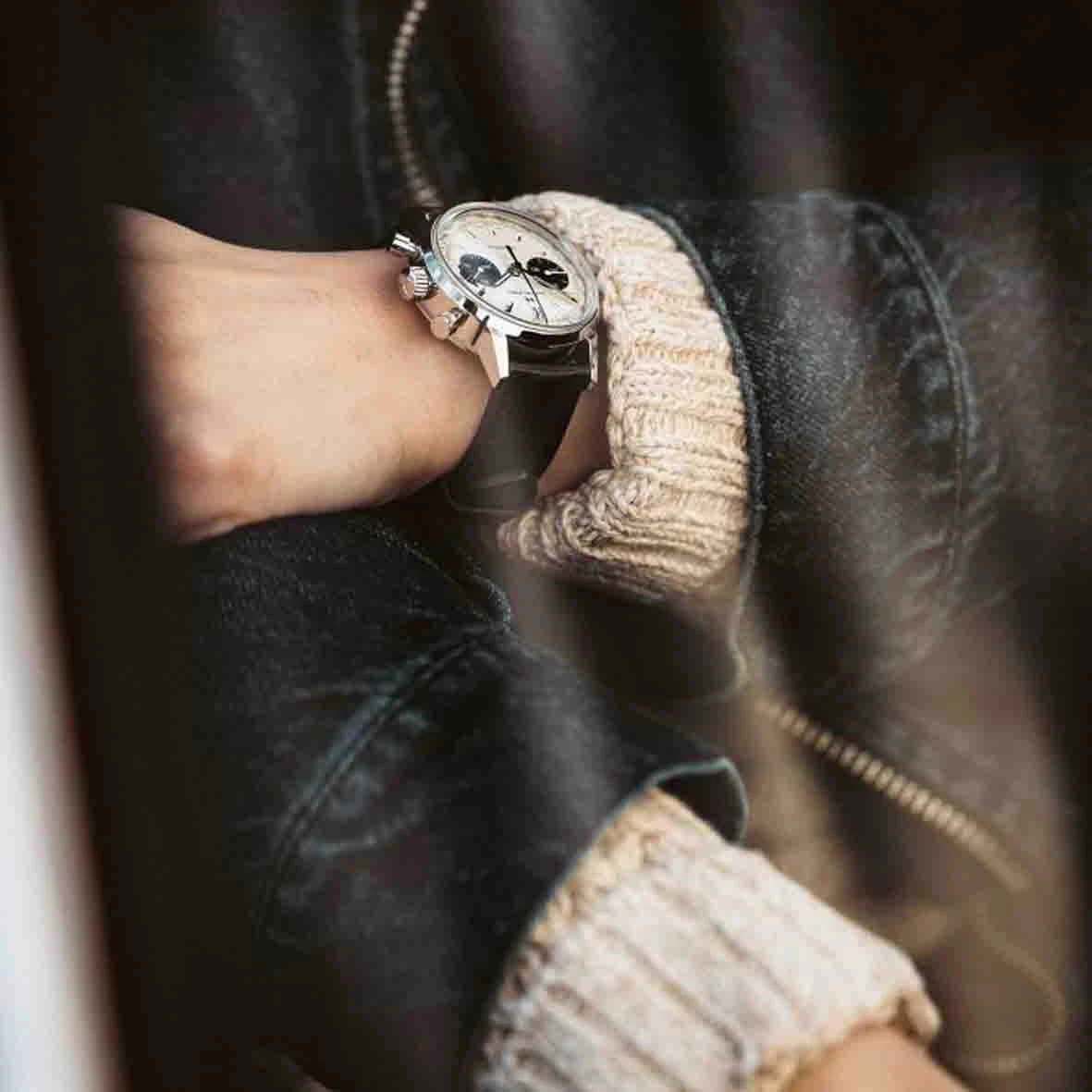 Un verre saphir en forme de boîte avec revêtement antireflet sur les deux faces protège le cadran panda signature, ajoutant une touche d’authenticité à cette version mécanique du modèle vintage d’origine.