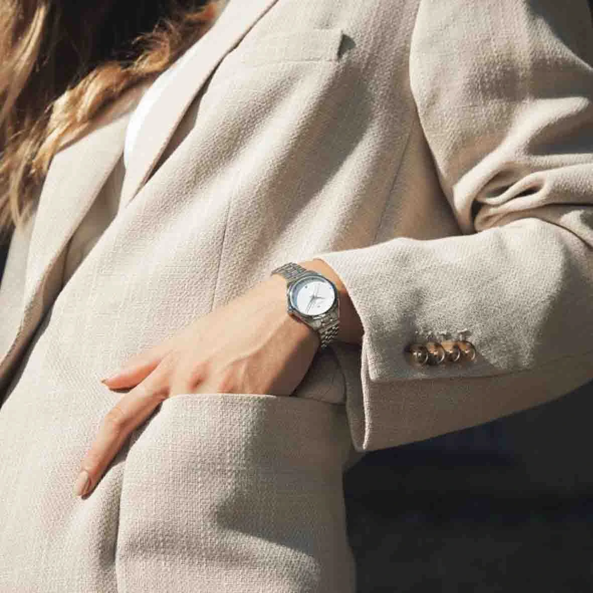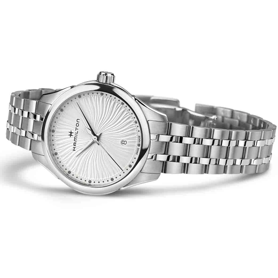 Des lignes élégantes donnent une impression de mouvement au cadran blanc argenté, bleu nuit ou velours noir de notre Jazzmaster Lady Quartz. Accompagnée d’un bracelet métallique épuré ou d’un modèle en cuir doux au toucher, cette montre sophistiquée de 30 mm rehausse tous les styles.