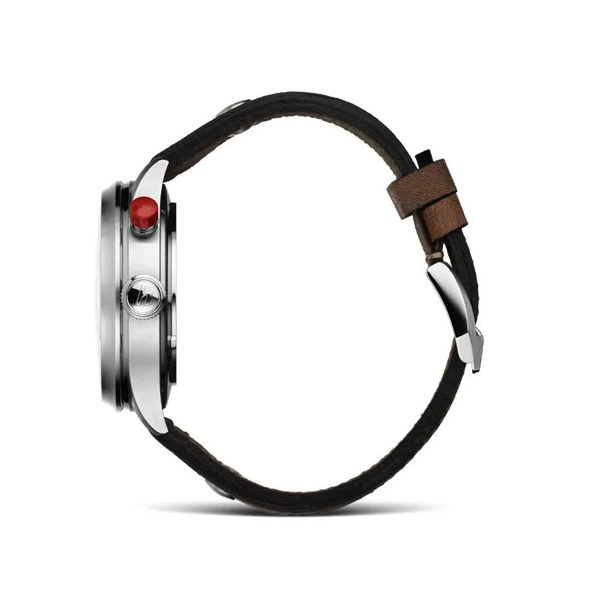 Tout comme ses prédécesseurs légendaires produits par Hanhart, le PIONEER MonoScope dispose d’un seul bouton pour contrôler l’ensemble des fonctions du chronographe.
