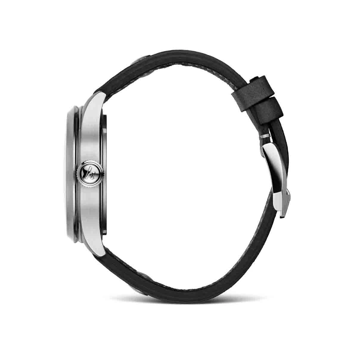 Tous les modèles de la collection PIONEER évoquent les montres historiques fabriquées par Hanhart, et la PIONEER Preventor9 ne fait pas exception. Sa marque de fabrique : la petite seconde à 9h.