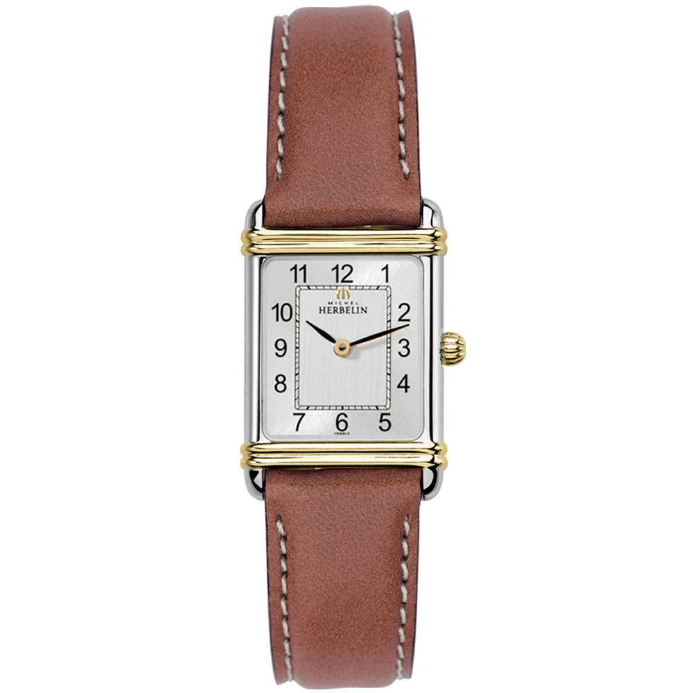 Montre Michel Herbelin pour femme en acier, PVD or jaune et cuir.