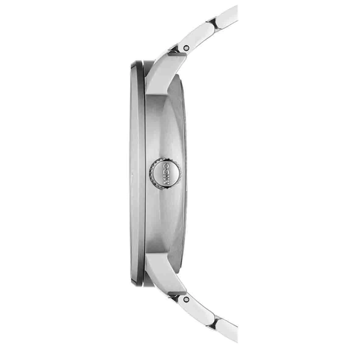 Finement décoré avec une masse oscillante ornée de côtes de Genève et du logo MIDO, le mouvement peut être observé à travers le fond de boîte en glace saphir de la Commander Big Date et de la Baroncelli Big Date.